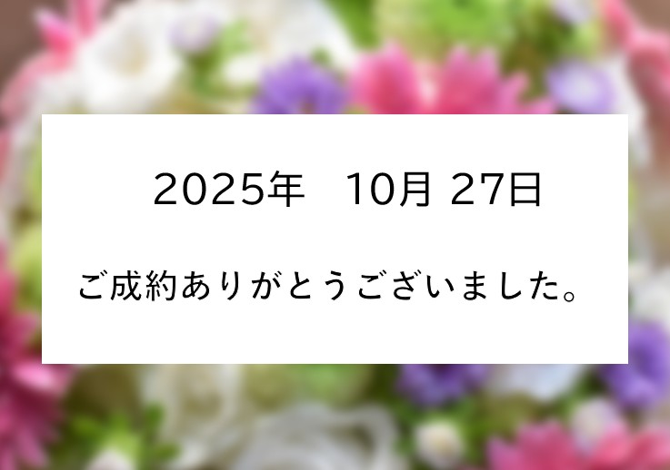 ご成約ありがとうございました お引渡しまで無事迎えられるよう誠心誠意お手伝いさせていただきます。引き続きよろしくお願いいたします。この度は本当にありがとうございました。 2025年10月27日(月)15時41分 インフォメーション