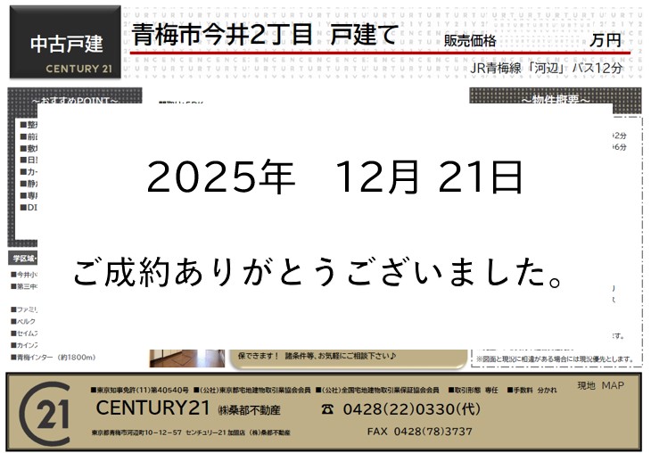 ご成約ありがとうございました お引渡しまで無事迎えられるよう誠心誠意お手伝いさせていただきます。引き続きよろしくお願いいたします。この度は本当にありがとうございました。 2025年12月21日(日)13時53分 インフォメーション