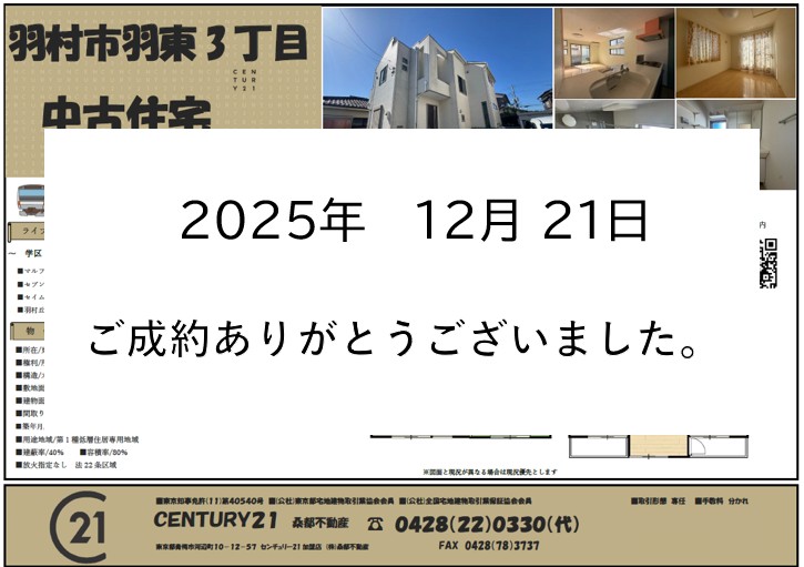 ご成約ありがとうございました お引渡しまで無事迎えられるよう誠心誠意お手伝いさせていただきます。引き続きよろしくお願いいたします。この度は本当にありがとうございました。 2025年12月21日(日)15時38分 インフォメーション