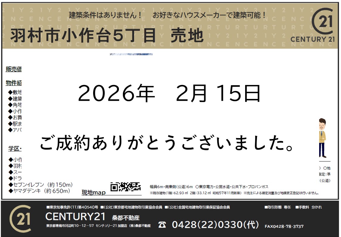 ご成約ありがとうございました お引渡しまで無事迎えられるよう誠心誠意お手伝いさせていただきます。引き続きよろしくお願いいたします。この度は本当にありがとうございました。 2026年02月15日(日)15時14分 インフォメーション