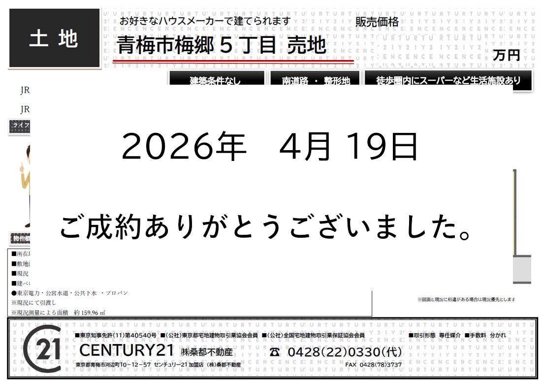 ご成約ありがとうございました お引渡しまで無事迎えられるよう誠心誠意お手伝いさせていただきます。引き続きよろしくお願いいたします。この度は本当にありがとうございました。 2026年04月19日(日)15時35分 インフォメーション
